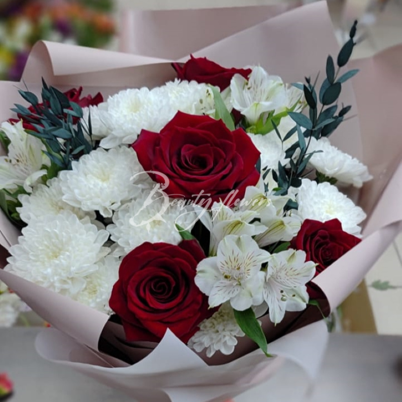 Очень красивая цветочная композиция от данного цветочного магазина. Доставка цветов была быстрой и своевременной. Очень доволен продуктом и обслуживанием клиентов. Я заказал онлайн и на 100% рекомендую использовать данный сайт